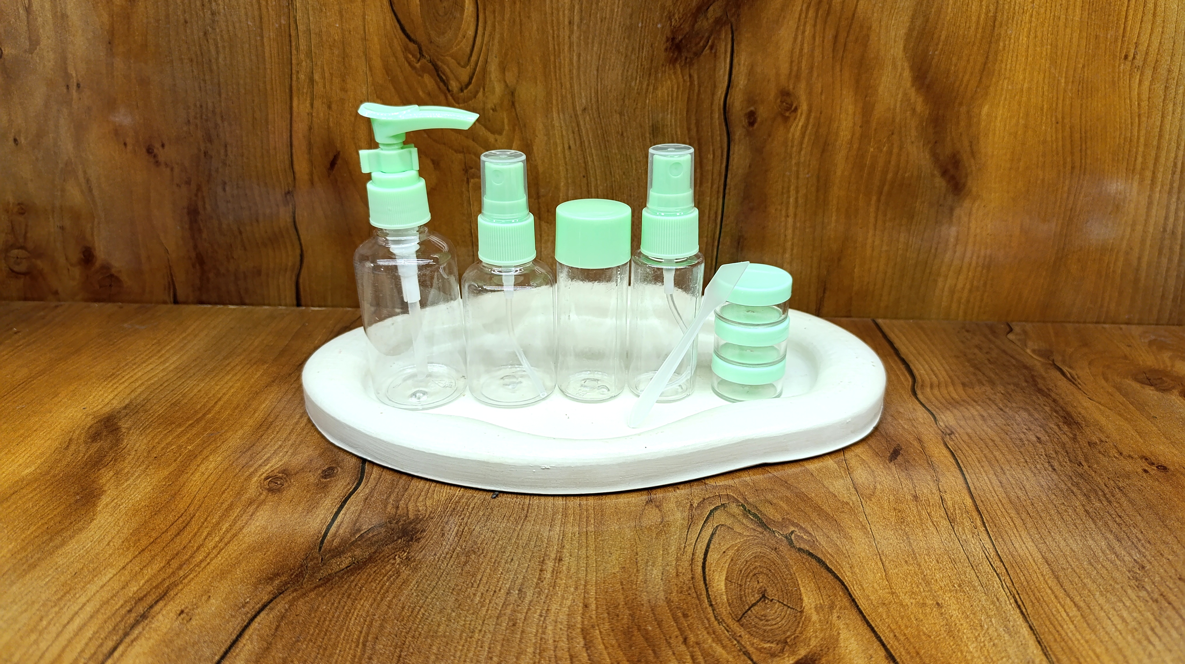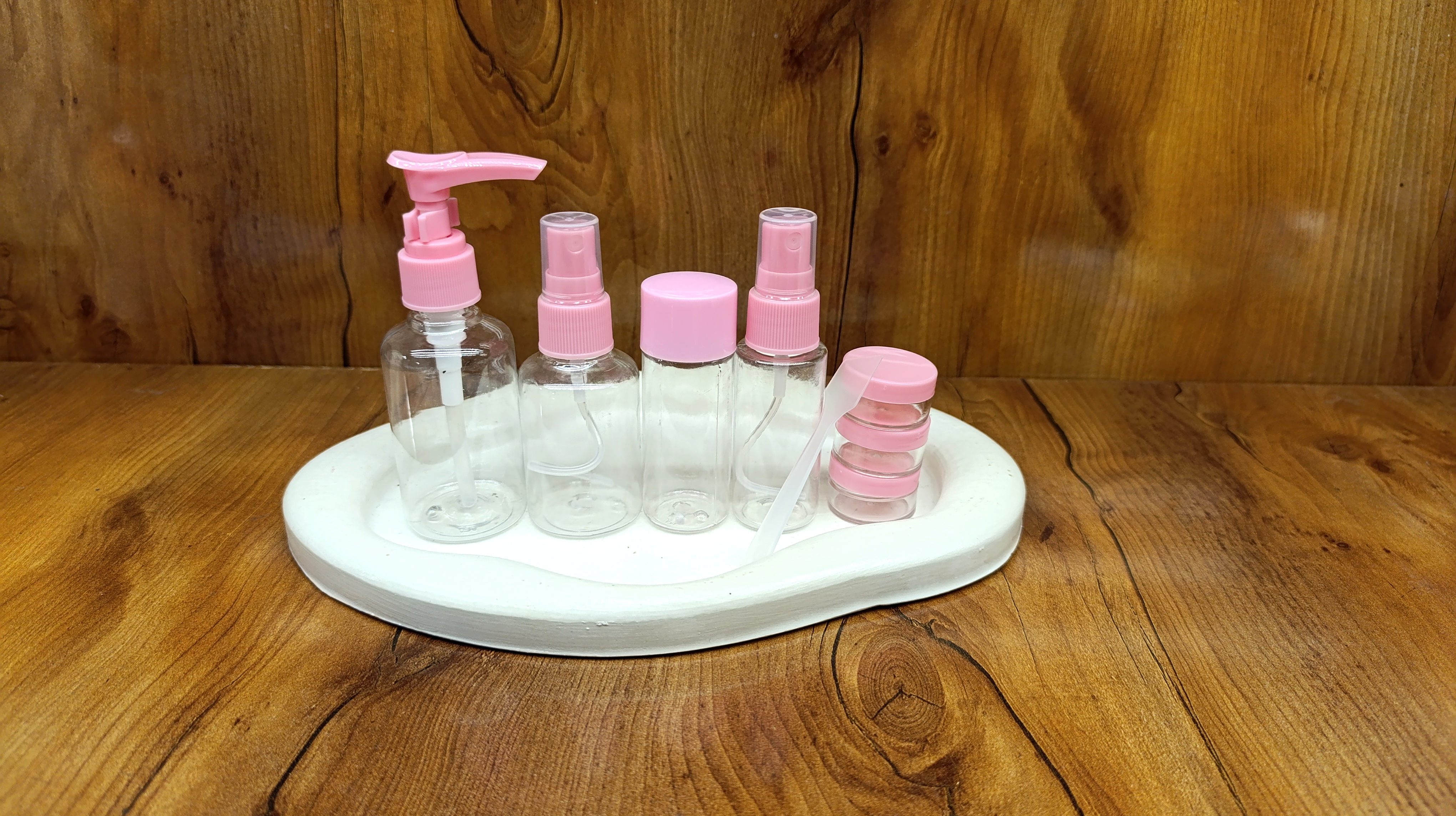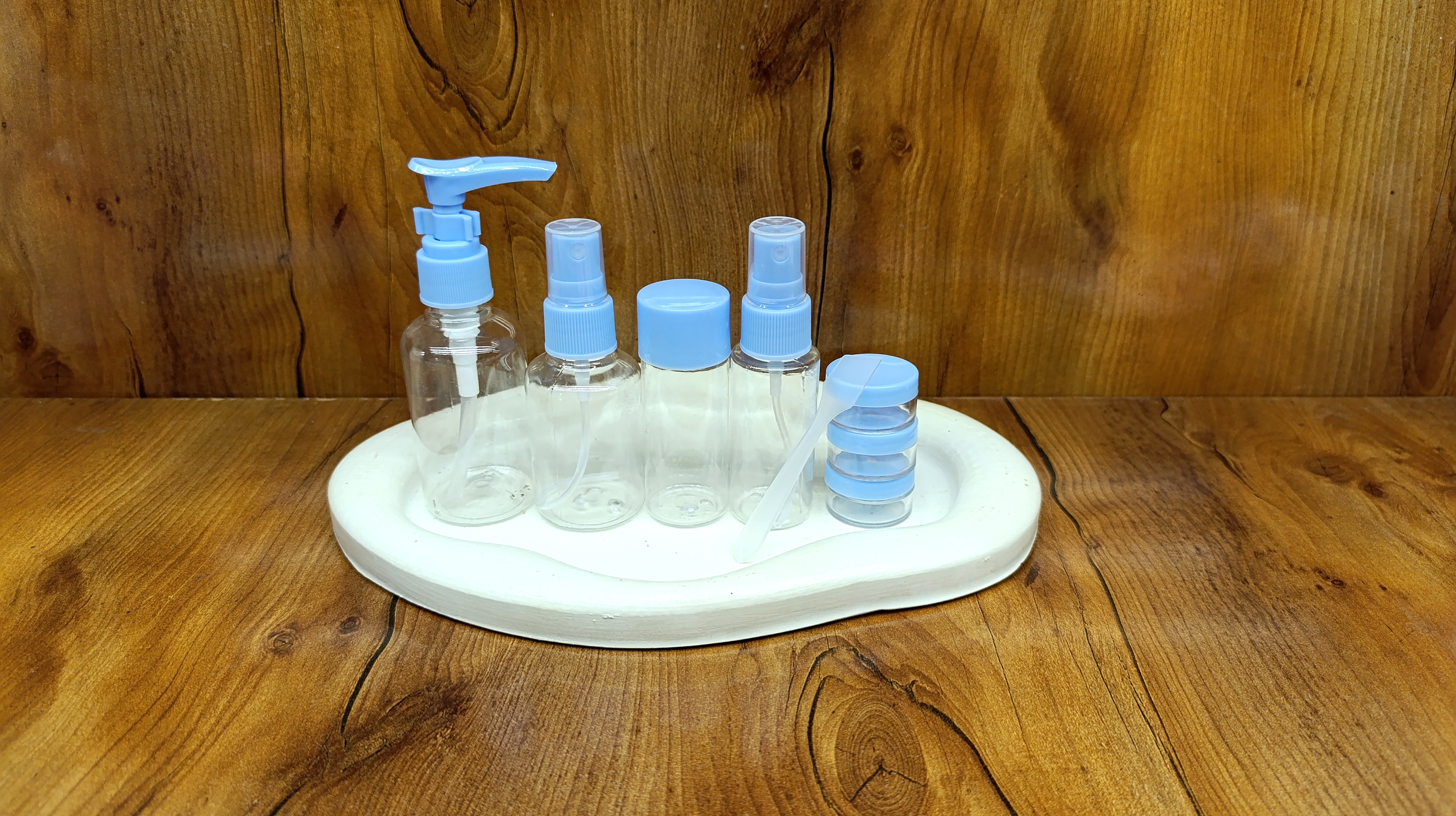 دیگه لازم نیست محصولات روتین پوستی تونو با خودتون ببرید و کلی فضا تونو بگیره. میتونی هرمحصول تو بریزی توی این پک. یه کیف پلاستیکی و قابل شستشو هم داره باخودش، که کارمونو خیلی راحت میکنه✅ ۷ تا ظرف و یه قاشقک داره و یه کیف قابل شستشو که جای خیلی کمی رو اشغال میکنه و خوراکه مسافرته.